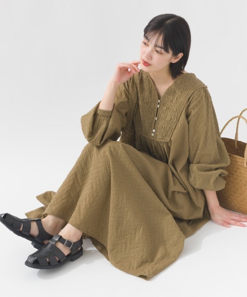 着るだけで主役級!ディティールに拘ったワンピース 【ポイント】 インド綿ならではの繊細な風合いフロントの仕様はデザインポイント! 一枚でも安心な透ける心配のない裏地付き。 ふんわりしたシルエットで体型カバーを叶えます。 ドビーの織柄でカジュアルさをプラスした大人の抜け感漂う仕上がり。 袖口にはゴムが入っており、袖をたくし上げてボリュームを持たせた着こなしも◎ 【コーディネート】 首元が気になる方は、シアーインナーと合わせると◎ 1枚ではもちろん、パンツとのレイヤードスタイルもおすすめ。 【人気商品・完売カラ-のお気に入り登録】 随時、入庫はしていますが人気のため 完売しやすくなっています!! お気に入り登録の♥をクリックしていただくと 通知がきて、すぐにご購入いただけます! あとは商品が届くのを待つだけ♪ぜひご登録ください! 【ブランドのお気に入り登録】 新商品や再入荷など、最新情報・お得情報をいち早くお知らせします! ぜひご登録ください! ------------------------------------------ ※掲載画像の商品の色味は、屋外や屋内の光の照射や角度により実物と色味が異なる場合がございます。 また表示のサイズ感と実物は若干異なる場合もございますので、予めご了承ください。