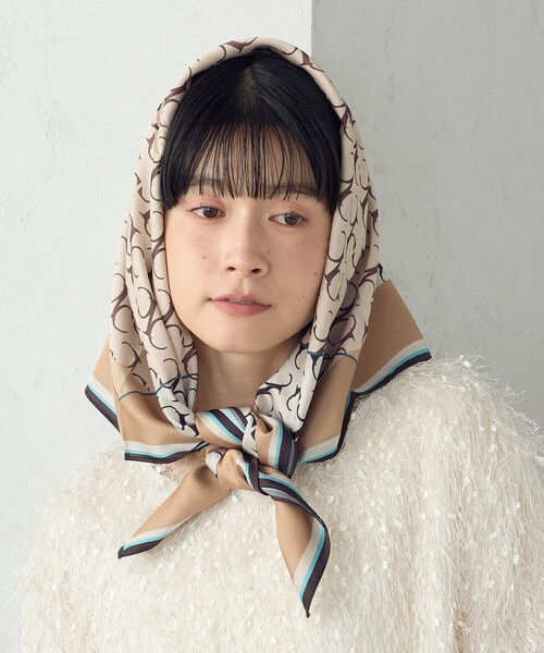 《デザイン》 約90cm×90cmサイズのマルチに使える 大判正方形モノグラムスカーフ。 スタイリングを格上げしてくれるトレンド小物です。 大きめサイズなので首元に巻くだけでなく、 ビスチェやオーバースカート風など レイヤードアイテムとしても活躍◎ 頭を覆うバブーシュカのようなスタイルはトレンドライク。 アレンジ次第で様々な着こなしが可能な優秀アイテムです。 柄はCOMMECAISMオリジナルのモノグラムプリントを 施しています。 枠の周りにはアクセントカラーを入れ、全体を引き締めています。 スカーフは年代問わず、使える実用的なプレゼントです。 大切な方へのプレゼントとして選ぶのに スカーフはふさわしいアイテムの一つ。 スカーフはさらりとまとうだけで、 より一層おしゃれ度をアップしてくれる、 いくつ持っていても困らないアイテムです。 何かプレゼントに迷ったら、 スカーフを是非検討してみてはいかがでしょうか。 カラーや柄の違ったものがたくさんあると、 その日のコーディネイトによって選べる幅もそれだけ広がります。 《素材》 さらりと滑らかな肌触りで程よい光沢感のある ポリエステルサテンを使用しました。 …………………… 透け感:なし 厚さ:薄手 伸縮性:なし 光沢感:微光沢 洗濯方法:手洗い ……………………