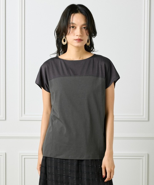 ■デザイン身頃に清涼感のあるきれいな表面感が特徴のコットン素材を使用した、シースルードッキングプルオーバー。ネックは開き過ぎないボートネック。後ろ裾は少しラウンドを付けたカッティングにしている為、ボトムアウトして着て頂くとバランスよくとお召いただけます。身体のラインを拾わず、気になる二の腕もカバーした身頃感にしています。■素材30デニールのポリエステルを使用したトリコット素材です。まるで、織物のシフォンのような透け感と表情になっています。ジャージ素材のため、織物のシフォンと比べて落ち感とストレッチ性があり、また光沢もあり繊細で上品な生地となっています。・水洗い可■サンプル撮影商品画像の商品はサンプルです。実際の商品とはサイズや色味、素材、デザイン等の仕様が若干変更になる場合がございます。