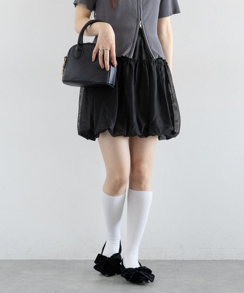 今季トレンドのミニバルーンスカートが登場◎■おすすめの着こなし☆トレンドライクな着こなしには・・・デニムやスラックスなどのボトムスと合わせて穿く、レイヤードスタイルがおすすめです。コンパクトトップスと着合わせることで、シルエットのバランスが取れた今年らしいスタイルが完成します◎☆一枚で穿くなら・・・甘めトップスと合わせる、フェミニンな着こなしがおすすめです。ハイソックスと合わせたフレンチガーリーなスタイルも◎■ポイントチュールとバルーンシルエットが甘めで可愛い、バルーンスカートが登場。動きに合わせてふんわり膨らむデザインが魅力的な一着です。ミニ丈なので、広がりすぎずスタイルアップも叶います◎ウエスト部分はぐるりと一周ゴム仕様なので、ノンストレスで着用可能。着合わせ次第でカジュアルからフェミニンまで幅広いスタイルをお楽しみいただけるスカートです。■素材肌触りが良く、穿き心地抜群なポリエステル100%素材を使用。ふんわり広がるチュールが女性らしい一着です。