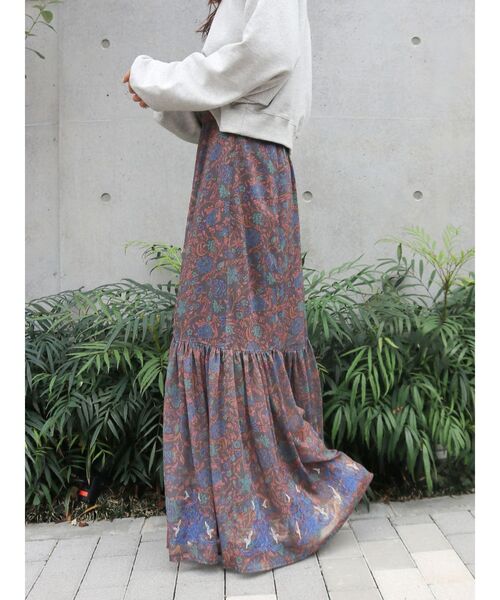 今季らしいシアー素材のフィットフレアスカート■デザイン たっぷりとフリルをあしらいボヘミアンライクな印象。裾の部分にはフリルデザインとオリジナル刺繍を落とし込み、ラメ糸でさらにアクセントを。柔らかく動きのある素材感で女性らしさたっぷりの1枚。■生地感 透け感のあるシアー素材を使用。オフホワイトは透け感が気になる方はペチスカートをあわせていただくのがおすすめです。■サイズ感 ウエストは後ろ身頃にゴムを使用し、サイズ感に合わせて着用いただけます。膝辺りまではストンとまっすぐなアイラインシルエットでそこから裾にかけてたっぷりとしたボリューム感を持たせています。身体のラインがカバーできるシルエットに仕上がっています。■スタイリング オーバーサイジングのシャツとの合わせで女性らしいスタイリングや、カットソーとの合わせでミックススタイリングもおすすめ。足元はロングブーツで秋冬感をプラスするとよりおしゃれ見えします。・・・・・・・・・・・・・・・・・・・・・・透け感:ややあり裏地:あり伸縮性:なし光沢感:なし生地の厚さ:普通・・・・・・・・・・・・・・・・・・・・・・※商品画像はサンプルのため、色味やサイズ、素材の混率等の仕様に変更がある場合がございます。予めご了承ください。※生地寄り画像を正規の商品の色味に近づけております。■商品のお気に入り登録再入荷通知やラスト1点、お得なプライスダウンの情報も受け取ることができます。ぜひご登録ください◎