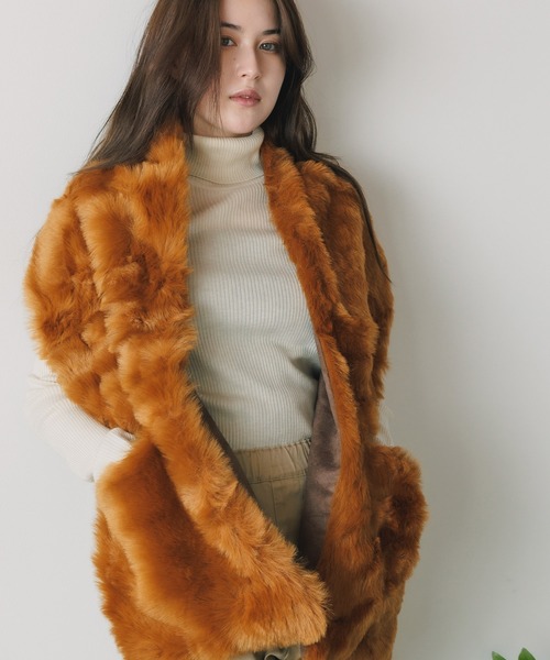 TWEEDMILL/ツイードミル 28x174cm Faux Fur Scarf with Pockets/ Suede Backing エコファースカーフ マフラー