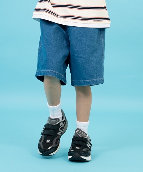 デニム素材に接触冷感機能をプラスしたハーフパンツです。ライトブルーとディープブルーの2色展開。さまざまなアイテムに合わせやすいシンプルなデザインです。ウエストゴムのイージータイプで着脱もスムーズ。短すぎない丈感のため、安心して着用できます。【SKIT0LY】全ての子供達に、ファッションで無限の変化と成長を。トレンドと子供らしい遊びこごろを掛け合わせたファッションを提案します。Grow with fashionEnjoy fashionChange with fashion【おすすめの着用時期は春夏シーズン】【透け感】透けない【生地の厚さ】普通【伸縮性】なし【裏地】なし【ポケット】あり【アジャスター】あり