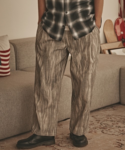 マーブル調のデザインを施したワイドパンツ! 【ポイント】 ●波立つようなマーブル模様が目を惹き、 こなれ感を演出してくれます。 ●程よくワイドなシルエットとウエストゴムで、 フィット感のあるリラックスした印象を与えてくれます。 ●両サイドにはタックデザインが施されています。 【おすすめコーディネート】 存在感のあるデザインなため、トップスには シンプルなTシャツやロンTがおすすめです。 足元にはスニーカーサンダルやロープロファイルスニーカーと 合わせたスタイルがおすすめです 【ROOPTOKYO ZOZOTOWN お買い物ガイド】 ▼商品をお気に入り登録! 完売商品の再入荷やラスト1点の通知、セール開始時にお知らせ! ▼"ROOPTOKYO(ループトーキョー)"をお気に入りブランドに登録! 新商品や再入荷など、ブランド最新情報をいち早くお知らせ! 是非、ご活用いただきお買い物をお楽しみください!