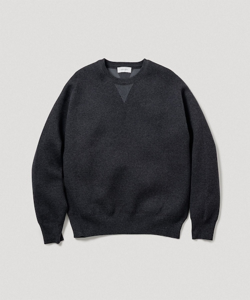 《しなやかで強い、大人のニットスウェット》 快適さと存在感を両立する、こだわりの定番。 同素材のパンツはこちら 【素材】 ヘビー級の風格と極上のやわらかさを両立 ・ヘビーウェイトスウェットのようなタフさと、抜群の柔らかさを両立した特別なニット ・オリジナルの杢配色:糸を染め分けたこだわりのカラーリング ・表側はコットンウール糸、裏側にリサイクルポリエステル糸を使用した環境配慮素材 ・高密度な度詰め編みによる、丈夫で張りと膨らみのある素材感 ・独特な立体感と保形性で、着るだけでシルエットが決まる 【デザイン・シルエット】 ヴィンテージにモダンなひねりを ・前後に配したガゼットデザインが、ヴィンテージライクなアクセント ・両脇にはサイドアクションリブ風の編み変化で動きやすさと視覚的アクセントを両立 ・程よいオーバーサイズで、1枚でもレイヤードでも使いやすいバランス ・着るだけで立体的なシルエットを演出する、ADAM ET ROPEのロングセラー 【おすすめスタイリング】 ・デニムやカーゴなどカジュアルボトムはもちろん、スラックスと合わせた上品カジュアルにも◎ ・冬はインナー使い、春や秋には1枚着としても活躍 ・足元はスニーカーやレザーシューズで、シーンに合わせたコーディネートを楽しめる 【推奨サイズ】 サイズS:身長〜165cm サイズM:身長〜175cm サイズL:身長180cm〜 ※標準体型を基にした目安になります。 ------------------------- 裏地:なし 光沢感:微光沢 透け感:なし ポケット:なし 伸縮性:あり 生地の厚さ:厚い -------------------------