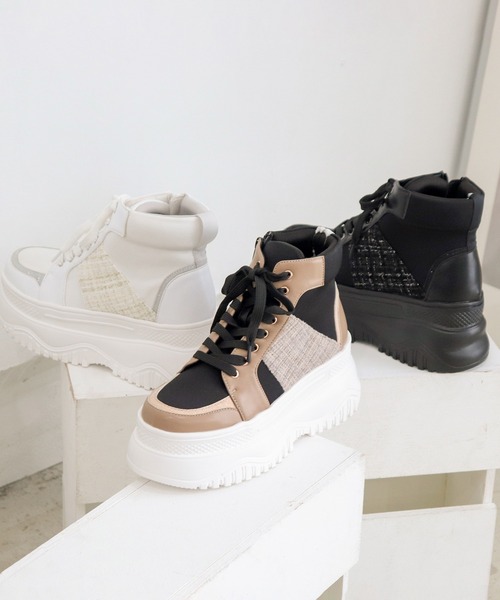 - 2025 Autumn&Winter -軽量│厚底ハイカットスニーカー 世代を超えて人気の厚底スニーカーを、ツイード素材で“byあしながおじさん”らしくアレンジ!限定モデルみたいな特別感のある一足です。7.5cmの厚底でしっかり盛れるのに、ソール全体が厚いから傾斜はほとんど感じず、楽ちんにスタイルアップ◎2025年秋はカラバリをリニューアル!よりコーデに合わせやすくなって、カジュアルにもきれいめにも活躍してくれる、万能スニーカーです。ポイント・スポンジやクッションを効かせ足あたりソフト・レースアップで甲幅を自分サイズに調節・厚底ソールで地面の硬さを感じない素材裏地:生地伸縮性:なしサイズ感:大きめ素材の柔らかさ:やわらかい片足の重さ:約 400g着用レビュースタッフ Kaho.Y足長 :23.7cm足囲 :23.5cm/ワイズ2E(やや広め)甲の高さ:6.1cm/標準特徴 :エジプト型|フェミニン|スカート派|高めヒール派|外反母趾と左足が内反小趾コメント:いつものサイズ23.5cmを靴下で着用しました。ゆったりとしたサイズ感で、いつものサイズだと少し大きかったので23.0を履いてみたらぴったりでした。ファスナー出着脱できるのでストレスも少なく履けます!切り替えのツイードがアクセントになって、大人可愛いデザインです◎スタッフ Yuki.T足長 :24.2cm足囲 :23.6cm/ワイズE(標準)甲の高さ:6.9cm/高め特徴 :エジプト型|カジュアル|パンツ派|厚底派|甲高め、巻き爪、踵の骨が出っ張っていますコメント:いつものサイズ24.5cmを靴下で着用しました。全体的に大きめです。私も実際に購入しましたが、普段履いているワンサイズ下を選びました。サイズを下げても甲や横幅は窮屈に感じませんでした。履き口にクッションが入っているので擦れる心配が無さそうです。厚底なのにとにかく軽く、インソールもふかふかなので足の裏が痛くなりにくいです。1日立ち仕事しても大丈夫でした。byあしながおじさん急速に移ろっていくファッショントレンドをもっとライトな感覚でつかまえていける、そんなキャッチーな立ち位置で。“あしながおじさん”がつくってきたカジュアルシューズの楽しさをもっとたくさんのお客さまにお届けするために。Instagramアカウント:ashinagaojisan_gramINFORMATION[商品について]・掲載画像はサンプルのため、実際の商品とは仕様・加工・サイズ・素材などが若干異なる場合がございます。・商品画像は光の加減やご覧いただく環境(パソコン・スマートフォンなど)により、実際の色味と異なる場合がございます。・色味をご確認いただく際は、商品単体の画像を目安にしてください。・包装紙・箱・タグの破損については、商品本体に不良がない場合に限り、そのまま出荷させていただいております。・厳選した素材を使用しておりますが、雨や汗による湿気、乾燥時の摩擦などで革の色落ちが生じ、衣服や靴下に色移りする可能性がございます。あらかじめご了承ください。[返品について]・商品の特性上、ご着用後の返品はお受けできません。あらかじめご了承ください。・修理のご依頼は、カスタマーサポートセンター内「ご注文に関するお問い合わせ」よりご連絡ください。[お気に入り登録について]気になるあの一足、見逃さないために——[♥] アイテムをお気に入りにすると…完売していた商品の再入荷や、在庫ラスト1点のタイミングでお知らせが届きます。[♥] ブランドをお気に入りにすると…新作や再入荷など、ブランドの最新情報をいち早くキャッチ!“欲しかったのに、もう売り切れ…” そんな後悔をしないために。あなたの「ときめき」を、そっとキープしておきませんか?
