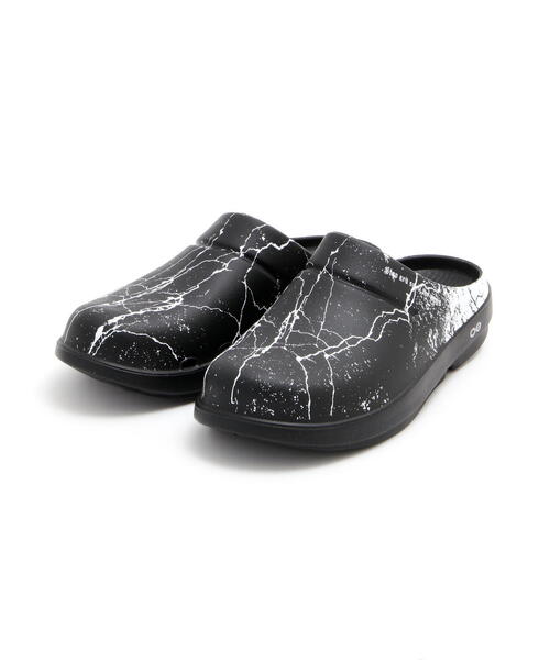 OOFOSxChildren of the discordance / OOcloog ウークロッグ サンダルチルドレン オブ ザ ディスコーダンスとリカバリーシューズブランドの「ウーフォス(OOFOS)」がタッグを組んだコラボサンダルがリリース!“OOCLOOG” White Line通年通して履けるクロッグタイプには道路の白線のひび割れを拡大し、サンプリングしたテキスタイルデザインを採用。サイドには“OORIGINAL” Crocodile同様、COTDのスローガン"STOP AND SMELL THE ROSES"をプリントしています。※メーカーサイトでサイズ表記が2025年11月より変更になっております。こちらの商品は2025年夏に入荷した商品のため旧サイズ表記になっております。あらかじめご了承をお願いいたします。●OOFOSの特殊ソール、OOfoam(ウーフォーム)は従来のパフォーマンスシューズの構造と異なり、37%もの衝撃吸収が可能です。●また、特許を取得している高密度のフットベッドと特殊技術を組み合わせることによって土踏まずを優しく支えながら保護し、足首への負荷を従来の靴よりも47%軽減できるとも示されています。●湿気や細菌に強く臭いを最小限に抑えるように設計されています。●洗濯機で洗えます。【Children of the discordance/チルドレン オブ ザ ディスコーダンス】Designer : HIDEAKI SHIKAMA自身が体現してきたユースカルチャーや世界の少数民族や貧困地域への深い知識から生み出されるコレクションは他のブランドでは表現できない独特の存在感がある。また2015SSよりスタートした、古くから親交のあるアーティストNAOTO YOSHIDA"とのヴィンテージウェアの新解釈を提案するジョイントワークは、リメイクの概念を変えるプレミアムなコレクションとなっている。【OOFOS/ウーフォス】2011 年にマサチューセッツ州のコハセットでスポーツ選手やトレーナー、大手シューズメーカーの製品開発に携わるベテランチームにより、2 年半の歳月をかけ開発されたリカバリーシューズブランドです。足裏への衝撃が大きいシューズは世の中に溢れているが、衝撃を吸収しリカバリーを目的とするシューズがないことに気付いた彼らは、OOFOS(R) を作りリカバリーシューズのパイオニアとなりました。OOFOS(R) 製品に使われている特殊素材 OOfoam は、前進力を生む事を目的とした一般的な EVA 素材のミッドソールと異なり、衝撃の反発を 37% 抑えることができ着地による足裏への衝撃を軽減することができます。そのため膝、腰、背中にかかる負担を軽減でき、また人間工学に基づいて設計されたフットベットにより、足を優しく包み込み、土踏まずをしっかりサポートします。現在アメリカでは、2011 年の立ち上げからリカバリーシューズへの理解が年々深まり、 2020 年にはランショップを中心に 4500 店舗にまで展開を広げています。