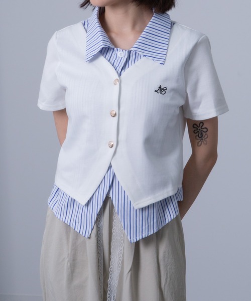 一枚でトレンドの韓国スタイルが完成☆ -商品ポイント- ・ストライプシャツと半袖カーディガンがドッキング ・レイヤードスタイルが簡単に完成◎ ・体にフィットするシルエット -コーディネート- シンプルな配色なのでどんなコーデにも合わせやすいのが嬉しいポイントです! 定番のデニムスタイルと合わせたカジュアルなスタイルがおすすめ。 丈が長めなので、柄物のパンツやスカートと合わせ、 ミニスカートやローファを合わせたスクールスタイルからキレイめスタイルまで幅広く対応。 ◆商品のお気に入り登録 完売カラーの再入荷通知や、ラスト1点、セールの通知をお知らせいたします。 ◆ブランドお気に入り登録 新商品や再入荷など、いち早くブランドの情報を受け取ることができます。 CZ_0005
