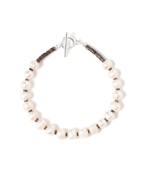 淡水パールがどんなコーデにも相性◎■デザイン2008年にスタートしたハンドメイドアクセサリーブランド〈ROSETTA PRAYER(ロゼッタプレア)〉から届いた、ブランドを象徴する人気のブレスレット。アンティークビーズとオリジナルビーズの感性を引き継ぎながら、6~8mm幅の淡水パールとオリーブシェル(ヒーシー)をバランスよくミックス。自然のぬくもりとヴィンテージ感が手元にやさしく宿る、洗練されたひと品です。■コーディネート程よい存在感のある粒感と、ナチュラルな光沢が特徴のブレスレットは、シンプルなコーディネートのさりげないアクセントにぴったり。デニムやリネンなどカジュアルな素材との相性も抜群で、重ね付けにもおすすめ。季節を問わず、日常に取り入れたいアイテムです。【アクセサリー・小物雑貨の取り扱いについて】・貴金属は、体質により、かゆみやかぶれを生じる場合があります。・皮膚に異常を感じた場合は直ちにご使用を止め、専門医にご相談下さい。・家事やスポーツ、就寝時や乳幼児の世話をする時などは、身体に危害を及ぼす場合がありますので着用を避けて下さい。・熱伝導が高いので、高温の場所や寒冷地での着用は火傷や凍傷の原因となりますので着用を避けて下さい。・乳幼児が誤飲しないように、保管は十分にご注意下さい。ROSETTA PRAYER 2008年にスタートした、アンティークビーズとオリジナルビーズを組み合わせたハンドメイドのアクセサリーブランド。