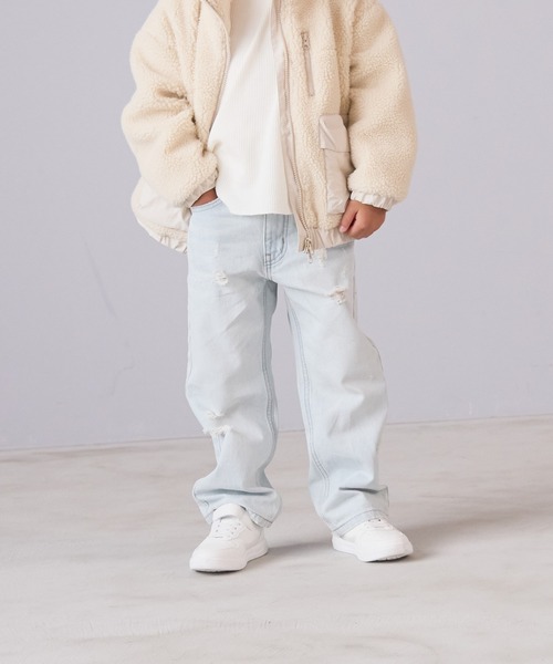【デザイン・素材】程よいゆとりのあるストレートシルエットとビンテージ感のある加工を加えた、メンズライクなデニムのストレートパンツ。カラーによって異なる加工感を加え、バリエーション豊富にラインアップしました。ウエストボタンをスナップボタンにする事で、よりお子様自身で着脱しやすいようにアップグレード。形は一緒でもカラーによって表情が異なるので、是非お気に入りの1枚を見つけて欲しいです。
