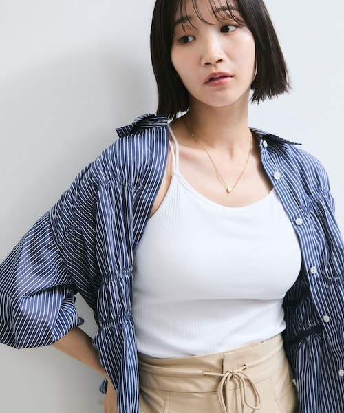 ◆2025春夏◆ <POINT> ・安心感のある素材感。 ・程よいアメスリ感。 ・カップは縫付けてずれない仕様。 【デザイン・シルエット】 インナーにもってこいなアメスリキャミソール。 やりすぎてない程よいアメリカンスリーブのシルエットが羽織りやTOPSとの相性ばっちり。 デコルテ部分が上品で大人っぽく着こなせます。カップが着いているので下着なしで着用いただけます。 【素材】 リブのカットソー素材。通年着れる素材感です。 【カラー】 ブラック(01)、ホワイト(10)とダークブラウン(20)のベーシックな3色展開。 【おすすめのスタイリング】 下着としてだけではなく、オールインワンのインナーやシャツの中に合わせてヘルシーに着こなすスタイルがおすすめ。 ----------------------------- 裏地:なし 光沢感:なし 透け感:なし 伸縮性:あり 生地の厚さ:薄手 肩紐:調整不可/取り外し不可 季節:春、夏、秋、冬 ----------------------------- 【モデル着用サイズ】 全色モデル身長:165cm、着用サイズ:F ※画像の商品はサンプルです。実際の商品と仕様、加工、サイズが若干異なる場合がございます。 ※画像によっては実際の色味と異なる場合があります。正しい色味は生地アップ画像をご確認ください。