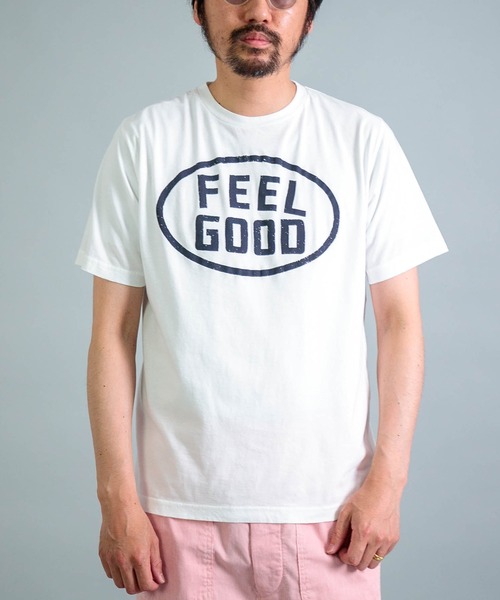 【 OMNIGOD STANDARD ITEM 】《FEEL GOOD》のロゴ入れたプリントTシャツ・薄手で軽いコットン天竺素材・ひび割れたプリントが着古した表情を演出 <素材・デザイン>細番手を使用したコットン100%の天竺生地。夏に欠かせないベーシックなTシャツの生地感です。夏の着こなしの主役になる薄手の生地で、シャツのインナーにも重宝する扱いやすい生地感です。《FEELGOOD》のロゴをプリント。ユニークなヴィンテージTシャツのロゴをベースに夏らしいフレーズをプリントしたものです。……………………透け感:白はややあり厚さ:薄手伸縮性:あり洗濯:可……………………コットン100%サイズ表記は2(Mサイズ)、3(Lサイズ)、4(XLサイズ)となります◇着用レビューH176 / 着用サイズ3(L)肌ざわりのよい柔らかく軽い着心地のTシャツ。サイズ感は程よくゆるさのリラックスシルエットでラフに着やすくて◎オーバーサイズ気味のデザインですが、着丈が長すぎないのでバランスのとれたスタイリングが組みやすいです。ユニークな柄と夏場に映えるカラー展開がシンプルな着こなしにはまります。[OMNIGOD / オムニゴッド] “人が着る事”その当たり前とも思える考えに常に向き合いながら、素材や加工を駆使し、着心地や風合いの良いモノづくりを行う。人が求める本当の服、そんなモノづくりを出来ればとオムニゴッドは考えています。お問い合わせ品番 :59-0020N / 59-020N
