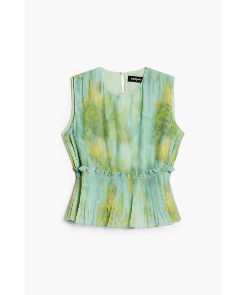 【ポイント】Desigual よりプリーツ生地、ウエストにゴム入りのフリルブラウスが登場。ミントグリーンからイエローのドリーミーなぼかし花柄とプリーツ素材が他にはないエアリーで上品な仕上がりです。ウエストのゴムフリルとノースリーブのフェミニンなシルエットもコーデにエレガントな印象をプラスするポイントです!【スタイリング】エレガントなプリーツブラウスはハイウエストボトムス合わせできれいめカジュアルに決めるのがおすすめです!テーパードパンツでオフィスカジュアルに着こなすのはもちろん、デニムでカジュアルダウンするのも◎ロングスカート合わせでフェミニンクラシカルなスタイルも今季のトレンド★※ご利用の端末画面の設定により実際の商品と色味が異なる場合がございます。【Desigual ZOZOTOWN お買い物ガイド】▼商品をお気に入り登録!♡をクリック!完売商品の再入荷やラスト1点の通知、セール開始時にお知らせ!▼"Desigual(デシグアル)"をお気に入りブランドに登録!新商品や再入荷など、ブランド最新情報をいち早くお知らせ!▼Pick up!店舗取り置きサービスがスタートいたしました。ご注文の商品を最短即日、お近くの店舗でお受け取りいただけます。【Desigualデシグアル】バルセロナ発のファッションブランド「Desigual(デシグアル)」。スペイン語で“他とは違う”という意味が現すとおり、他のブランドにはない地中海をイメージさせるカラフルな色使いやエキゾチックなパターン、パッチワークやデニムなど着る人の個性を引き立てるアイテムを展開。デイリーにも、ドレスアップにも活躍する幅広いデザインが魅力。レディースだけではなく、メンズやシューズなど幅広いラインナップを展開。ブランド名にもなっているDesigual(他とは違う)は、自分自身が他の人と違うことがどれだけ大切で楽しいことなのかを改めて感じてもらいたいという私たちの願いが込められています。 自由で楽しく、カラフルで前向き。本当の自分を呼び覚ます鮮やかなカラーやプリント、他とは一味違うスタイルはファッションを楽しくするものばかりです。