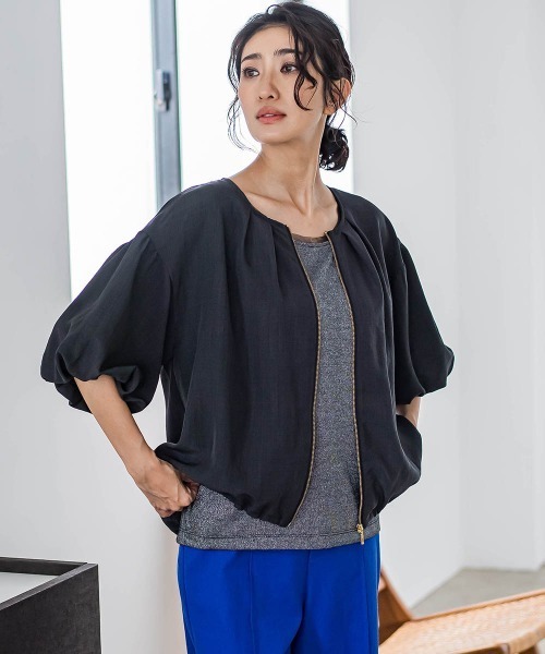 【デザインの特徴】ブルゾンのように羽織ってもおしゃれなジップアップデザインブラウス。ころんとしたバルーンスリーブで女性らしさをプラス。麻調合繊の涼し気な素材感で、夏のおでかけや冷房対策としてもおすすめ。----------------------------------------------------------------洗濯方法家庭洗濯:液温は40℃を限度とし、手洗いができる。自然乾燥:日陰の吊り干しがよい。アイロン:底面温度160℃を限度としてアイロン仕上げができる。ドライクリーニング:石油系溶剤による弱いドライクリーニングができる。----------------------------------------------------------------※画像の商品はサンプルとなりますので実際の商品と仕様、加工、サイズが若干異なる場合がございます。※お客様のモニター環境により実際のお色と多少異なる場合がございます。※撮影状況や光の当たり具合により、色合いが異なって見える場合がございます。※商品タグに記載されたサイズはヌードサイズです。実際の商品のサイズは商品情報の実寸をご確認ください。▼商品のお気に入り登録ハートマークをクリックし、お好きなカラーを選んでお気に入りに登録完売カラーの再入荷通知や、ラスト1点の通知、セールの通知も受け取ることができます。▼ブランドのお気に入り登録新商品や再入荷等、いち早くブランドのお得な情報を受け取ることができます。