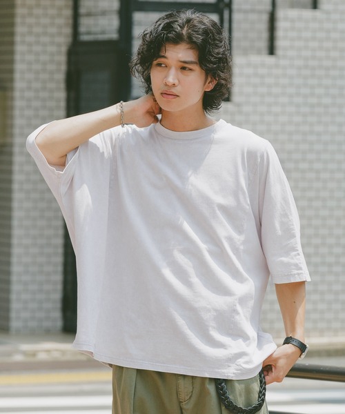 ヴィンテージ感溢れるドルマンスリーブTシャツ。 独特の風合いがトレンド感を演出。 ーーー ■ポイント ドルマンスリーブの半袖Tシャツは、ピグメント加工を施しヴィンテージ感のある素材で仕上げています。 全体的にルーズなサイズ感がトレンド感を演出するシルエットです。 一枚一枚風合いのある加工を施し、一枚でサラッと着てもかっこよく決まるデザインが魅力です。 ユニセックスでの使用が可能なため、どなたでもお楽しみいただけます。 ■素材 ヴィンテージ感のあるピグメント加工を施したコットン100%素材を採用。 程よくドレープ感があり、夏に涼しい素地で心地良い着用感が特徴です。 古着のような風合いが、より一層の味わいを生み出す素材となっています。 ====== ■参考サイズ M:~175cm L:175cm~ ====== ーーー ■スタイリング このTシャツはデニムパンツやカーゴパンツと合わせでカジュアルなスタイルを楽しむのがおすすめです。 スラックスと合わせて、きれいめカジュアルとしても活躍します。 スニーカーやサンダルで足元をまとめ、季節感のあるコーディネートをお楽しみください。