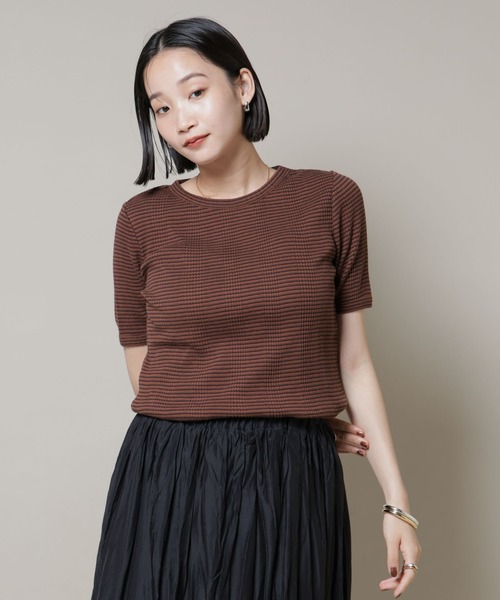 【2025 AW】NANO universe(ナノ・ユニバース)『毎日のスタイリングに寄り添うマルチボーダーカットソー』落ち着いた配色のマルチボーダーが大人カジュアルスタイルに重宝するカットソートップス。甘すぎない細ピッチのボーダー柄に、裾はメロー始末でフェミニンさをプラス。柔らかく伸縮性の高いテレコリブカットソー素材で着心地も抜群の一着です。■デザイン・甘すぎない印象の細ピッチのボーダー柄・裾のメロー始末でフェミニンさをプラス・すっきりとした印象のクルーネック・デイリーの着回しに重宝■素材・コットン100%で柔らかく伸縮性の高いテレコリブカットソー・さりげない凹凸感が特徴的な素材・洗濯機使用可■カラー展開・大人が着やすい落ち着いた配色が魅力のブラック、ホワイト、ブラウン■コーディネート・デニムパンツとカジュアルにサラッと着こなすスタイルがおすすめ・スラックスやワイドパンツ、フレアスカート等きれいめなボトムとの相性も◎■サイズ感・コンパクトながら身体のラインを拾いすぎないサイズ感■取扱方法ネットを使用して下さい。濡れたままの放置や、長時間の浸漬はしないで下さい。洗濯後は形を整えて直ちに干してください。あて布を使用してください。摩擦により、素材表面が白っぽくなったり、毛羽立ちが発生したりします。強くこすられた部分がすじ状の線を引いたように見えることがあります。こちらの商品は水や雨に濡れたり、汗による湿気、乾燥状態での摩擦により、薄い色の衣服などに色移りする可能性がございます。予めご了承いただき、ご使用の際にはご注意くださいますようお願い致します。※サンプルにて撮影、採寸を行う為、実際にお届けする商品と仕様やサイズが異なる場合がございます。予約時は生産の都合上、お届け予定時期が前後する場合もございますので、予めご了承下さい。※光の当たり具合や撮影環境により色味が異なる場合がございます。正しい色味はスタジオ画像の色味をご参照ください。※こちらの商品は、アウトレット店舗での取り扱いになります。直接店舗へお問い合わせの際はアウトレット店舗へお願い致します。プロパー店舗での取り扱いはございませんので、ご了承ください。※サイズスペックは、ブランドの採寸方法で表記している場合がございます。予めご了承ください。▼商品のお気に入り登録お気に入りアイテムの再入荷や残り1点の通知を受け取ることができます。▼ブランドのお気に入り登録新作アイテムの入荷や人気アイテムの再入荷、タイムセールやクーポンなど、いち早くブランドのお得な情報を受け取ることができます。