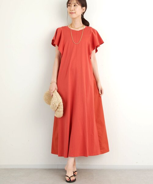 洗練されたデザインで着映え力抜群のフレアワンピース 商品ポイント ・一見シンプルながら、フレアーなスリーブデザインが女性らしいアクセントに◎ ・嬉しい綿100%素材で、これからのシーズンにも快適な着用感になっています。 ・ボディーにフィットしすぎないリラクシーなシルエットで、オンオフ選ばず着用いただけます。 おすすめコーディネート 1枚ではもちろん、合わせるバッグやシューズなどによって雰囲気を変えられます◎ デニムパンツなどを合わせた、大人のレイヤードスタイルを楽しむのもおすすめです! おすすめスタイリングアイテム 《美シルエットが叶う・3サイズ》リラックスセミワイドデニム テレコリブWストラップカップ付きキャミ 《着回しに便利◎》リブタンクトップ ひねり金具レザーハンドルカゴバッグ 素材 本体:綿100% 別布:綿100% 洗濯方法:手洗い可 透け感:なし 裏地:なし 伸縮性:あり 生地の厚さ:普通 光沢:なし ポケット:なし 《Q&A》 Q1:着丈が気になります。 身長160センチ前後のスタッフが着用すると、足首まですっぽり隠れる丈感です。 場合によっては高さのあるシューズを合わせていただくのをおすすめします。 Q2:季節的にはいつごろまで着用できますか? それほど薄手の素材ではありませんので、カーディガンなどと合わせていただくと秋口まで着用いただけるかと思います。 Q3:着た時のシルエットが気になります。 スカート部分は程よくボリューム感がありフレアーなシルエットです。 袖も広がりのあるデザインですので、二の腕カバーも叶うのがうれしいポイント◎ 【スタッフ着用コメント】 《なの》 身長:162cm/着用サイズ:F 体型:普通/骨格:ウェーブ/パーソナルカラー :イエベ春 リラックスした雰囲気もありつつ、こなれ感たっぷりのワンピースです。 身長162センチの私が着用すると、しっかりと足首まで隠れる丈感なので、ロングワンピース好きにはたまらないです! 骨格タイプ 骨格ストレート:全体的に立体型で筋肉質。ひざ下はすらっと細め。ボディラインにメリハリがある。 骨格ウェーブ:上半身が薄く、華奢。緩やかな曲線のボディライン。下半身に重心があり女性らしい体型。 骨格ナチュラル:筋肉や脂肪があまり感じられない体型。腰の位置が高く骨や関節が目立ちやすい。 -------------------------------------------------------------------------------- 【注意点】 ※画像の商品は光の照射や角度、お使いのモニター環境により、実物と色味が異なる場合がございます。 ※入荷状況により、お届け予定が前後する場合があります。 ※工場の生産の都合上、納期が変更になる場合がございます。検品や輸送の関係で、発送日が前後しますのでご了承ください。 また、入荷状況により、お客様への発送が店頭販売より遅れる場合もございます。 ※追加生産商品は、一部の店舗、通販で販売中の場合がございます。予めご了承下さい。 ※サンプルでの撮影、計測をしております。商品の仕様が一部変更になる場合がございます。 ※撮影サンプル品はブランドタグがついておりません。製品にはタグがつきますので、製品の表に縫い糸が見える場合がございます。 -------------------------------------------------------------------------------- 【お買い物をもっと便利に楽しく♪】 『ハート』をクリックでお気に入り登録 〇「商品のお気に入り登録」で・・・ ラスト1点や再入荷の通知が届きます。 登録して頂いた商品だけが対象となる、あなただけのタイムセールが開催されることも! 〇「ブランドのお気に入り登録」で・・・ 新商品や再入荷など、 いち早くブランドのお得な情報を受け取ることができますので、ご登録をおすすめします! --------------------------------------------------------------------------------