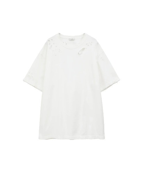 CLANE 襟ぐりや袖に施したクラッシュ加工が印象的なオーバーサイズTシャツ。 一点一点、手作業でダメージを加えた後に製品染めを施すことで、ヴィンテージライクな風合いと深みのある表情を生み出しました。大胆なオーバーシルエットが抜け感を出しつつ、随所にこだわった加工技術でモードなエッセンスをプラス。 独特のこなれ感と洗練された雰囲気で、シンプルながらも着るだけで存在感を放つおすすめの一着です。 --------------------------- 裏地:なし 透け感:なし 厚さ:普通 --------------------------- ※クラッシュ加工は商品毎に個体差が生じる可能性があります。 CLANE・・・松本恵奈がディレクションするCLANE(クラネ) 。「STANDARD」に現代的な柄、素材、デザインを取り入れ新しいフォルムを表現。「特別な一枚」を重視し、長く愛用していただける洋服を提案。 【お買いものをお楽しみいただく為に!】 ▼商品のお気に入り登録完売カラーの再入荷通知や、 ラスト1点の通知、セールの通知も受け取ることができます。 ▼ブランドのお気に入り登録新商品や再入荷など、 いち早くブランドのお得な情報を受け取ることができます。
