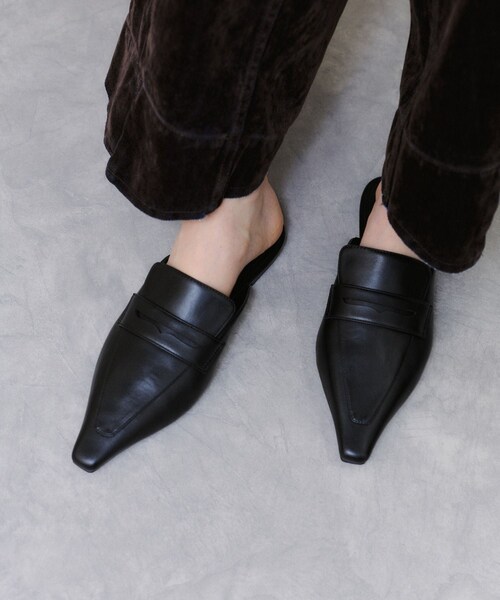 ◆2025-26秋冬◆ ADAM ET ROPE' FEMME 【Material】 マットな表面感と、レザー調の質感にこだわって厳選したフェイクレザーを使用。 【Design】 ローファ×ミュールの抜け感のあるフラットデザイン。 カジュアルにもクラシックにも様々なスタイリングを楽しめるアイテム。 すっきりと長めシルエットにこだわったオリジナルデザインのスクエアトゥ型を使用。 【Color】 ブラック、ダークブラウンの2色展開。 【Styling point】 季節の変わり目にあると活躍するミュールデザイン。 ワイドなボトムスとも好相性。 コーデに抜け感をプラスするのにおすすめ。 ソックスをレイヤードしても素敵。?