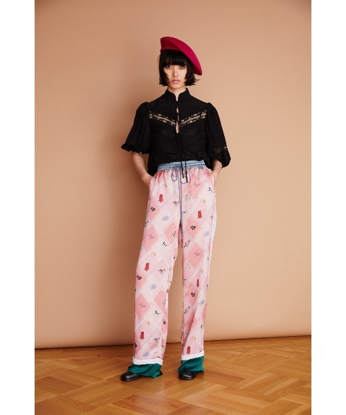 自分たちのペットをベストフレンドとして扱い、柄にまで取り入れた“Best Firiends”プリント。 そんな50年代のムードを取り入れ、愛らしい動物たちをプリント柄にしました。 ウエストにドローストリングを配したリラックスして着られるパンツは、“Best Firiends”プリントのほかにウエスト、サイド、裾と3色の無地を配色し、スポーティかつモードなニュアンス。どんなトップスとも合わせやすい1枚に。