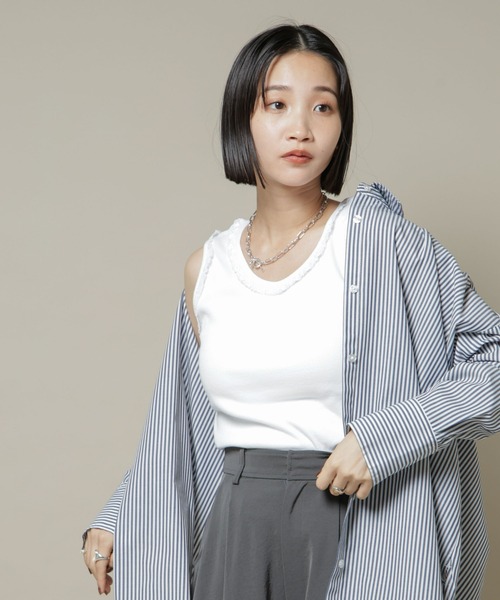 【2025 AW】 NANO universe(ナノ・ユニバース) 『チラ見えするレースラインが女性らしさをプラス』 シンプルなリブのタンクトップに華奢なレースをトリミングしたトップス。一枚ではもちろん、シャツやサマーニットのインナーとしてレースをチラ見せさせたスタイリングがおすすめです。 ■デザイン ・女性らしいレースをあしらったリブタンクトップ ・シンプルながらもインナー映えしてくれる一着 ・デコルテラインを綺麗に見せてくれる深めのクルーネック ■素材 ・柔らかくシャリ感のあるドライタッチな肌触りのリブカットソー ・洗濯機使用可 ■カラー展開 ・ベーシックでインナーとしても使いやすいホワイト、L.ブラウン、ブラック ■コーディネート ・シャツやサマーニットのインナーとして、レースをチラ見せさせてスタイリングのポイント使いに〇 ■サイズ感 ・伸縮性があり、身体のラインに程よくフィットするシルエット ■取扱方法 蛍光増白剤が入っていない洗剤を使用して下さい。ネットを使用してください。色物(特に濃色)と白物・淡色物は分けて洗ってください。濡れたままの放置や、長時間の浸漬はしないで下さい。洗濯後は形を整えて直ちに干してください。あて布を使用してください。濃色は着用時の汗や摩擦により色落ちしますので、淡色物と合わせての着用はお避けください。素材の性質上、直射日光や蛍光灯の長時間照射により、色あせする恐れがあります。 ※サンプルにて撮影、採寸を行う為、実際にお届けする商品と仕様やサイズが異なる場合がございます。予約時は生産の都合上、お届け予定時期が前後する場合もございますので、予めご了承下さい。 ※光の当たり具合や撮影環境により色味が異なる場合がございます。正しい色味はスタジオ画像の色味をご参照ください。 ※こちらの商品は、アウトレット店舗での取り扱いになります。直接店舗へお問い合わせの際はアウトレット店舗へお願い致します。プロパー店舗での取り扱いはございませんので、ご了承ください。 ※サイズスペックは、ブランドの採寸方法で表記している場合がございます。予めご了承ください。 ▼商品のお気に入り登録 お気に入りアイテムの再入荷や残り1点の通知を受け取ることができます。 ▼ブランドのお気に入り登録 新作アイテムの入荷や人気アイテムの再入荷、タイムセールやクーポンなど、 いち早くブランドのお得な情報を受け取ることができます。
