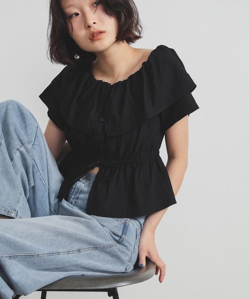 旬顔になれる肌見せトップス■デザインフリルカラーが印象的なオフショルダーブラウス。落ち感がありながらもハリ感を併せ持つ柔らかな素材を使用し、あえてシワ感を加えた表情豊かな生地が、こなれた雰囲気を演出します。大胆に開いた襟元で、ヘルシーな肌見せが楽しめるデザインです。■コーディネート襟周りにはゴムが施されており、肩を出してオフショルダーとして着こなせば、ぐっと今っぽいスタイルになります。Tシャツなどの上に重ねて、ラッフルカラーをレイヤードとして楽しむのもおすすめ。パンツにもスカートにも合わせやすい幅広い着こなしに対応します。■サイズウエストのドロストで、シルエットの調整が可能。ゆったりとした身幅ながら、お好みのフィット感で着こなせます。■素材落ち感がありながらもハリ感を併せ持つ柔らかな素材を使用し、あえてシワ感を加えた表情豊かな生地が、こなれた雰囲気を演出します。【WHITE】BEAMS STAFF:H164 Size:ONE SIZE【BLACK】BEAMS STAFF:H163 Size:ONE SIZE【BROWN】Model:H:165 B77 W57 H85 Size:ONE SIZE※光の当たり具合やパソコンなどの閲覧環境によって、実際の色味と異なって見える場合がございます。予めご了承ください。※商品の色味は商品単体で撮影した画像をご参照ください。