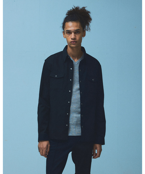 ストレッチ&セットアップ対応ウエスタンデニムシャツ 【素材】9.1Ozストレッチデニム素材を使用。柔らかく、優れたストレッチ性で快適に着用いただけます。 ワンウォッシュ加工を施すことで表面上の糊が取れ、適度なインディゴ染料も一緒に洗い流した使い勝手の良い素材。 【デザイン】 両胸にフラップポケットを施したウエスタンシャツをモチーフとしたデニムシャツ。カジュアルな印象のデニムシャツもパールドットボタンを使用することで上品な印象へ。 程よい厚さのある生地感は、シャツとしてだけではなく秋の羽織りとしても活躍してくれる一枚。 【コーディネート】 同素材スラックス(品番:02510052001)と合わせたセットアップスタイルがオススメ。 ※同素材ジャケット(品番:02510082001)もあり。