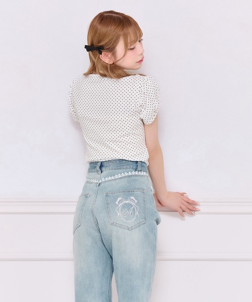 ◆ロゴ刺繍がワンポイント♡美脚デニムパンツが登場!後ろポケットに施されたロゴ刺繍で後ろ姿まで抜かりなく可愛い♡ウエスト部分、両ポケット、後身頃部分にレースが縫いつけられており、他と差が付く、お洒落見えデニム!ジャストサイズで膝からふくらはぎにかけてややフレアシルエットのため、美脚効果抜群◎Tシャツやカットソーでカジュアルにも、ブラウスでフェミニンにもお召しいただけます!シーズンレスで着回しできる1本持っていると便利な万能アイテム♩---------------------------------------透け感:なし伸縮性:あり裏地:なし---------------------------------------※ご覧のモニター環境や撮影環境により実際の商品と多少色味が異なって見える場合がございます。ご理解の程よろしくお願いいたします。【お買い物をよりお楽しみいただく為に♪】▼商品のお気に入り登録をおすすめします♡をクリック!完売カラーの再入荷や、ラスト1点の通知、セールの際の通知を受ける事ができます。ブランドのお気に入り登録もご一緒にお願い致します。
