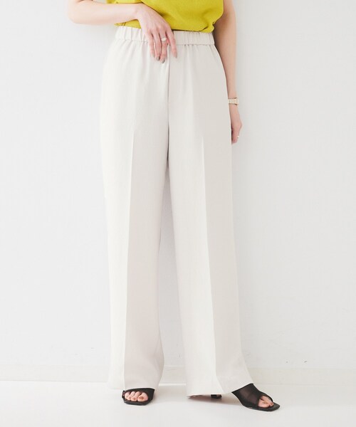【デザイン】 センタープレスのキレイめパンツは、ウエストがグルッとゴムの仕様になっています。 ゴムの仕様ながらストレートのキレイめなシルエットになっています。 キレイめにもカジュアルにも活躍間違いなしのアイテムです。 【素材感】 ポリエステル100%の梳毛調合繊のツイル素材。 ウールのような程よい弾力性としなやかさと艶感を持つポリエステル素材。 イージーケアできてきちんと感がありながら、ジャージのような着心地感を感じていただける素材となっております。 (UV・接触冷感機能付帯) 【着こなしポイント】 キレイめな153-82691や82690、12640にもおすすめです。 【仕様】 ・ポケット数:横×2 ・ウエスト総ゴム ・裏地なし ・ライトベージュ(051)のみペチパンツ付き ※こちらの商品はやや透け感があります。 ※この製品は、太陽光線中の紫外線(UV)を通しにくくします。この効果は永久的ではありません。 ※照明の関係により、実際よりも色味が違って見える場合があります。また、パソコン・スマートフォンなどの環境により、若干製品と画像のカラーが異なる場合もございます。 モデル情報:身長161cm B79 W58 H86 着用サイズ:02(M) 店舗へのお問い合わせ商品番号:153-63101 ●製品寸法: 00(XS):W63cm H92cm 股下67cm 前股上27cm 渡り幅30cm 裾幅24cm 01(S):W66cm H95cm 股下72cm 前股上27cm 渡り幅31cm 裾幅25cm 02(M):W70cm H99cm 股下72cm 前股上28cm 渡り幅32cm 裾幅26cm 03(L):W73cm H102cm 股下73cm 前股上28cm 渡り幅33cm 裾幅27cm 04(2LT):W76cm H105cm 股下73cm 前股上29cm 渡り幅34cm 裾幅28cm 42(2L):W80cm H109cm 股下72cm 前股上30cm 渡り幅36cm 裾幅29cm 44(3L):W84cm H113cm 股下72cm 前股上30cm 渡り幅37cm 裾幅30cm 46(4L):W88cm H117cm 股下72cm 前股上31cm 渡り幅38cm 裾幅30cm 48(5L):W92cm H121cm 股下72cm 前股上32cm 渡り幅39cm 裾幅31cm 50(6L):W96cm H125cm 股下72cm 前股上33cm 渡り幅41cm 裾幅31cm 備考: