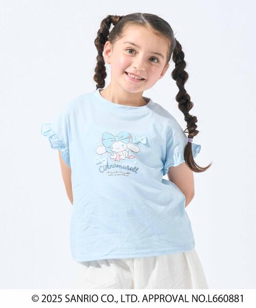 【デザイン】大人気のサンリオキャラクターズをモチーフにしたデザインTシャツです。フレンチスリーブにフリルがデザインされたガーリーなシルエットに、フロントのリボンモチーフのキャラクターアートが可愛さをプラス。立体的なリボン使いも華やかな印象で、ギフトにも喜ばれそうな1枚です。カラーごとに異なるキャラクターアートを使用しています。【素材】着心地の良い綿混カットソー素材を使用しています。※照明の関係により、実際よりも色味が違って見える場合があります。また、パソコン・スマートフォンなどの環境により、若干製品と画像のカラーが異なる場合もございます。店舗へのお問い合わせ商品番号:122-13505●製品寸法:10(100cm):着丈39cm B68cm 裄丈23cm11(110cm):着丈42cm B72cm 裄丈24cm12(120cm):着丈45cm B76cm 裄丈25cm備考: