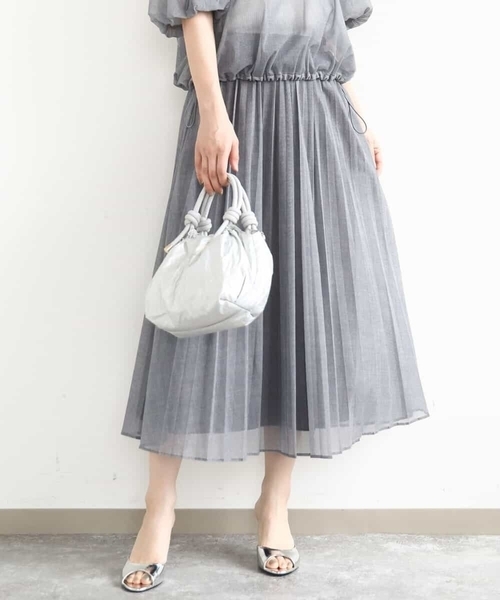 やわらか素材が履き心地のいいプリーツスカート ■デザイン 透け感のあるデニム調の素材がトレンドライクなスカート。チュール素材にプリーツ加工を施しました。やわらかな素材は広がりすぎず適度な落ち感があり、程よいボリューム、ヒップ周りをすっきりと見せてくれます。ウエストは後ろゴム仕様になっており、ラクな履き心地の良さも◎ ■素材 デニム調見えするやわらかなチュール素材を使用。通常のチュールよりもストレッチ性に優れており、程よいシアー感がトレンドライクな素材です。 ■コーディネート チュールにプリーツを施しているので、そこまでかっちり感がなく優しげでやわらかな印象に。カジュアルスタイルにもマッチします。同素材のブラウスやブルゾンもご用意しているので、セットアップでの着こなしもおすすめです。 -------------------- 着用シーズン 春:○ 夏:◎ 秋:◎ 冬:× -------------------- 洗濯表示:洗濯機洗い可 透け感:あり 裏地:あり 伸縮性:あり ウエスト:後ろゴム仕様 生地の厚さ:やや薄手 -------------------- ■スタッフ着用コメント <スタッフ身長:149cm/着用サイズM(38)/普段の着用サイズS(36)~M(38) > やわらか素材と透け感のあるデザインがトレンド感のあるスカートです。適度な落ち感があり、動くたび、きれいなシルエットです。休日のお出かけやオンオフ兼用で使える大人かわいいコーデにぴったりです。ウエストゴム仕様で履き心地も抜群です。 <スタッフ身長:157cm/着用サイズM(38)/普段の着用サイズM(38)> ハリのあるシアー素材がトレンド感あるスカートです。デニムの様に見えてシアーな軽さが魅力でおしゃれ度が高い一枚です。プリーツデザインで縦のラインを強調してくれるので細見え効果もあります。ウエストオールゴム仕様でゆったりとした着用感です。 <スタッフ身長:164cm/着用サイズM(38)/普段の着用サイズS(36)~M(38)> やわらかな素材が魅力。透け感のあるデザインがトレンド感を演出しながらも、どんなコーディネートにも合わせやすいアイテムです!ウエストゴム仕様で、帰省や通勤、休日のお出かけ、さらには旅行にも大活躍◎適度な落ち感で、動くたびに美しいシルエットでエレガントさをプラス。 -------------------- ※自然光・照明の関係、パソコン・スマートフォンなどの環境により、実際と色味が違って見える場合がございます。予めご了承ください。商品の色味は、詳細画像をご参照ください。 ※サンプルでの撮影となるため、実際にお届けする商品と仕様やサイズが異なる場合がございます。