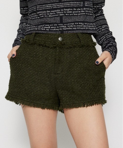 ■POINT:裾のフリンジがポイントのツイードショートパンツ。■DETAIL:コンパクトなディティールで普段使いしやすいシンプルなデザイン。■STYLING:セットアップの COMPACT TWEED JK (510IAM30-1031) との合わせがおすすめ。_____________________LAGUA GEM(ラグア ジェム)ー媚びない強さとしなやかな女性らしさが共存するスタイルーカジュアルなアイテムにストリート&ヴィンテージテイストをミックスメンズライクになりすぎない女性らしさとバランス感のある着こなしにこだわった新しいカジュアルスタイルを提案_____________________▼商品のお気に入り登録お気に入りアイテムの値下げ・再入荷・在庫1点などの通知を受け取ることができます。▼ブランドのお気に入り登録新商品や再入荷、セール、クーポン配布などお得な情報を受け取ることができます。AUTUMN & WINTER ( 秋服 / 冬服 )