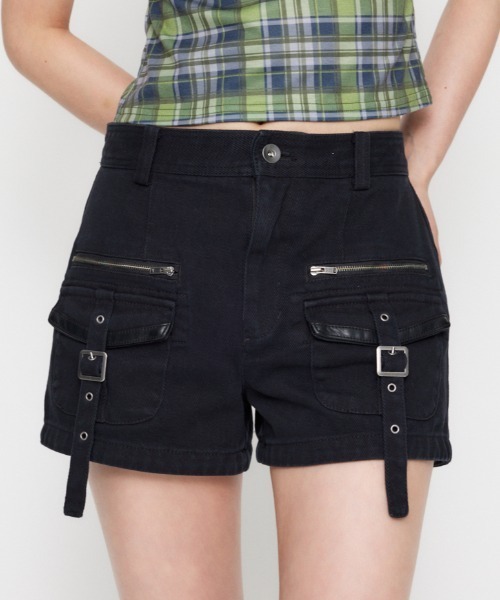 ■POINT:コンパクトなサイズ感でベーシックなカラー展開の為、デイリー使いに最適なアイテム。■DETAIL:ジップやフラップ付きのポケットデザインがシンプルになりすぎず着用して頂けます。■STYLING:タンクトップやTシャツで合わせるのは勿論、カジュアルにルーズなシルエットのアイテムと合わせるスタイリングもおすすめ。■透け感:なし■光沢感:なし■伸縮性:なし■裏 地:なし※本品は素材の特性上色落ちします。洗濯、クリーニング、着用(使用)時に他の衣類や雑貨、家具類に色移りする事があります。特に汗や雨等で湿った状態では、色落ちが顕著になります。白、淡色との組み合わせは避け、お取り扱いには十分ご注意下さい。また製品で特殊な加工を施している為、商品の仕上がりに個体差が生じます。1点1点、違う表情をお楽しみください。_____________________LAGUA GEM(ラグア ジェム)ー媚びない強さとしなやかな女性らしさが共存するスタイルーカジュアルなアイテムにストリート&ヴィンテージテイストをミックスメンズライクになりすぎない女性らしさとバランス感のある着こなしにこだわった新しいカジュアルスタイルを提案_____________________▼商品のお気に入り登録お気に入りアイテムの値下げ・再入荷・在庫1点などの通知を受け取ることができます。▼ブランドのお気に入り登録新商品や再入荷、セール、クーポン配布などお得な情報を受け取ることができます。