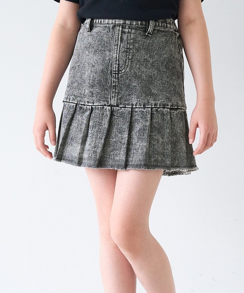 かわいさ満点!トレンド感あるキッズデニムスカート ■デザイン・シルエット ウエスト下の切り替えから広がるプリーツが、動くたびにひらりと揺れて可愛らしさを演出。 裾はフリンジ仕上げで、程よいラフさとこなれ感をプラス。 カジュアルなデニム素材ながら、ディテールにこだわったトレンド感のある一着です。 ■素材 ・程よい厚みと柔らかさのあるデニム素材 ・動きやすく、デイリー使いにもぴったり ・シーズンレスで着回しやすい万能アイテム ■コーディネート Tシャツやタンクトップを合わせて元気なカジュアルスタイルに。 スウェットやカーディガンと合わせれば、季節の変わり目にも◎ スニーカーやサンダルとも相性抜群で、デイリーからお出かけまで大活躍のスカートです。 伸縮性:ウエストのみあり 透け感:なし 裏地:なし ポケット:なし 生地感:柔らかいデニム生地 注意点:お洗濯方法によっては縮みや色あせの可能性あり。乾燥機等のご使用はお控え下さい。 ▼生地や素材の性質により2cm前後サイズ誤差が出る場合がございます。 ▼モデル着用写真は撮影環境により、多少実際のカラーと異なる場合がございます。 ▼色落ちの恐れがありますので、他のものと分けて洗って下さい。 ▼当商品は機械による生産の過程上、『生地を織る際の糸の継ぎ目』や多少の『ほつれ』、繊維の『混紡』、形やサイズに多少の『誤差』が生じる場合がございます。 ジュニア ボトムス スカート デニム ミニスカート タック ウエストゴム カジュアル 女の子 ガールズ 子供服 120 130 140 150 コカ COCA coca COCA coca