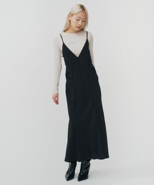 大胆な背中あきがTTMらしい、バックオープンキャミソールドレス 深いVネックと、ほどよく身体に沿ったラインが美しい。 大きくあいた背中には、ロゴをレタリングしたオリジナルのジャカードゴムを使い、バックスタイルのポイントに。タンクトップやベアトップとあわせたレイヤードの着こなしや、ジャケットやシャツを羽織ったスタイルもおススメです。 *肩紐で着丈を調整いただけます。 詳細 透け感:あり 裏地:なし 伸縮性:あり 光沢感:なし 生地の厚さ:薄い MATERIAL スーツ地のような見え方でありながら、着心地はジャージーのような伸縮性で、しわになりにくいといった取り扱いのしやすさが特徴です。 THINGS THAT MATTER (シングス ザット マター) まったく新しいアプローチで、コレクションを展開、感じることの大切さを伝えるブランド。 クリエイティブディレクターにはデザイナー武笠綾子を起用。 自分の内側に目を向け、自分を愛するきっかけになってほしい。 自分を愛することで一人ひとりの魂が満たされ、エネルギーが整い、正しく循環することでこの星のすべてを愛することに繋がる。 【 気になるアイテムはお気に入り登録をお勧めします!】 ♡マークをクリックし、再入荷やラスト1点の通知、セールなどのお知らせを受けることができ、お買い物が楽しめます。 ブランドのお気に入り登録もぜひお願いします!