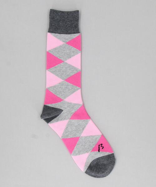 大胆で大柄なダイヤ柄のクルーソックスです。 配色もβメンらしい色相いのデザインになっています。 アイコンのβマークはブラック一色に統一させ引き締まった印象に仕上げています。 ソフトな履き心地はいつも通りのベーシックソックスです。