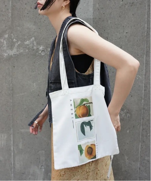 HATAMAN×Ameriコラボレーションアイテム!!! Ameriオリジナル柄をプリントしたミニトートバック。 3つの正方形に切り取ったような柄がポイント。 背面にはAmeriロゴの刺繡入り。 配色のステッチがさりげなく目を惹くアクセントになっています。 シンプルながらもこなれた雰囲気に。 丸めてスナップで止めればコンパクトに畳めて、持ち運びも簡単な実用性抜群のアイテム。 同デザインのTシャツもご用意。 --------------------------------- 透け感:なし 裏地:なし 伸縮性:なし 光沢感:なし 生地の厚さ:普通 お手入れ方法:手洗い可 --------------------------------- ■畑萬陶苑(はたまんとうえん) 1926年(昭和元年)創業の伊万里鍋島焼窯元。 350年におよぶ鍋島焼の伝統を継承し、職人の手仕事による巧みの技と審美眼で感動を生み出すものづくりを目指す。艶やかな絵付けを際立たせる透明感のある白い肌合い、余白を活かした絶妙な構図と奥行きの表現など、美と技を受け継ぎながらも、新しい素材や技法も積極的に取り入れ、これまでにないものづくりを目指す。近年は有名シェフとの食器開発のほか、異業種とのコラボレーションにも挑戦。創造と革新のストーリーを世界に発信している。 今回のコラボレーションは、畑萬陶苑の持つ美意識と技術に深く惹かれたことから、Ameriよりオファーしたことで実現しました。 ※ブランドロゴのリニューアル移行期間に伴い、モデル着用商品および商品単体画像とお届け予定の商品とで付属品のロゴデザインが異なる場合がございます。予めご了承ください。 ※商品画像はサンプルのため、色味やサイズ、素材の混率等の仕様に変更がある場合がございますので、予めご了承ください。 ※モデル着用写真につきましては、光や照明の加減により、実際よりも色味が異なって見える場合がございます。商品の色味は、商品単品の画像をご参考ください。 また、使用しているパソコンのモニターやスマートフォン等の設定により、現物と画像の色味が若干異なる場合もございます。予めご了承ください。 (色落ち) この製品は色落ちに注意が必要です。発汗・摩擦等(特に湿っている時)により、多少脱色したり、色移りすることがあります。雨や汗等で濡れた時はすみやかに水洗いをして下さい。洗濯は手洗いで軽く押し洗いし、色落ちする恐れがありますので、ほかの物と一緒に洗わないで下さい。濡れた状態でしばらく放置すると、ほかの洗濯物に色が移ることがありますので、脱水は短時間で処理し、すぐに形を整えて干して下さい。濡れたままほかの洗濯物とは絶対に重ねないで下さい。洗濯の際にはもみ洗いは避け、漂白剤は絶対に使用しないで下さい。洗剤を直接製品にふりかけないで下さい。蛍光増白剤が入っていない洗剤を必ず使用して下さい。 (顔料プリント製品) この製品は、より自然な風合いを表現する為、特殊な顔料でプリント加工を施しています。着用や洗濯を繰り返すことにより、もまれたり擦られたりすると、ひび割れや脱落することがあります。着用の際は、バッグ等で必要以上に摩擦しないで下さい。
