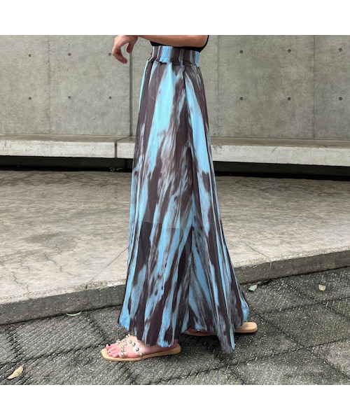 ニュアンス感のあるタイダイ柄が1枚で目を惹くロングスカート。 水彩画のようなぼかし柄が印象的で、存在感あるアイテム。 タイダイ柄がコーデのアクセントになってくれるので、トップスはシンプルなアイテムがおすすめです◎ コンパクトなトップスやサンダルと合わせて、夏の旅行やビーチリゾートにも映える1枚です。 ※モデル身長:161㎝ ■クリックポストにて代引きをお選び頂いた方は、400円プラスさせていただき、宅配便の代引きにて発送させていただきますのでご了承下さい。 ◾️カラー ブルー ◾️サイズ ワンサイズ スカート丈95cm 裏地丈53cm ウエスト(ゴム仕様)54-114cm ※多少の誤差は予めご了承ください。 ◾️素材 表地:ポリエステル100% 裏地:ポリエステル100%