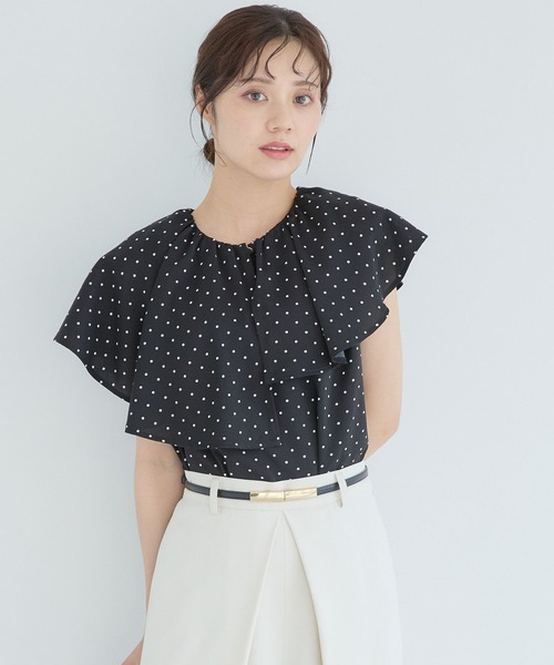 左右差のあるフレアカラーが印象的な夏ブラウス。 1枚で主役になる後ろ姿も着映えるデザインです。 ノースリーブにビック襟を合わせ二の腕をさりげなくカバーします。 無地、ドットの4色展開。 ドットはフレンチシックで女性らしさをUPさせるトレンド柄です。 ※屋内外の光や照明の当たり具合で、実際の商品の色味とカラー別画像の色味に違いが発生する場合がございます。色味はスタジオ撮影の詳細画像にてご確認ください。 ※生地の寄り画像が最も実物に近い色味となります。 ーーーーーーーーーーーーーーーーーーーーーーー ▼ 商品のお気に入り登録 ▼ 完売カラーの再入荷通知や、ラスト1点の通知、 クーポン開始、セールの通知も受け取ることができます。 ▼ ブランドのお気に入り登録 ▼ 新商品や再入荷など、 ブランドのお得な情報をいち早くお知らせ! ぜひご登録ください!