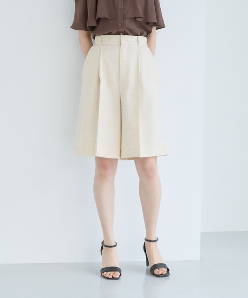 リネンタッチのハーフパンツ。センタープレスが利き大人女性がはきやすいキレイ目なシルエットにこだわりました。短すぎないひざ丈で、トップスとのバランスもとりやすくなっています。軽いエアリーな素材で夏にぴったりな1本。同素材のジャケットを合わせたセットアップスタイルもお楽しみいただけます。※屋内外の光や照明の当たり具合で、実際の商品の色味とカラー別画像の色味に違いが発生する場合がございます。色味はスタジオ撮影の詳細画像にてご確認ください。※生地の寄り画像が最も実物に近い色味となります。ーーーーーーーーーーーーーーーーーーーーーーー▼ 商品のお気に入り登録 ▼完売カラーの再入荷通知や、ラスト1点の通知、クーポン開始、セールの通知も受け取ることができます。▼ ブランドのお気に入り登録 ▼新商品や再入荷など、ブランドのお得な情報をいち早くお知らせ!ぜひご登録ください!