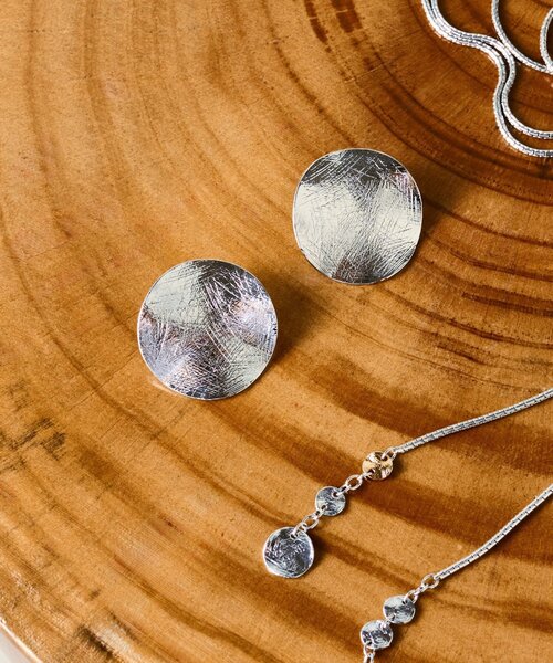 ■アイテムシルバーカラーの大きめのサークル型が存在感のあるピアス。ゆがみのあるプレートにはスクラッチをいれ味のある印象に。ポスト部分が真っ直ぐストレートになったスタッズピアスで取り付け易いのもポイント。同じくシルバーのラリエットと合わせるのもおすすめです。※カラー表記はゴールドですが、実際のお色味はシルバーカラーです。■素材シルバーメッキ《予約商品について》・サンプルの為、素材情報については企画段階の情報を記載しております。公的機関での試験データ結果を受け、量産にあたり混率の変更が発生する場合がございますので、ご了承くださいませ。・サンプルでの撮影、計測をしております。商品の仕様が一部変更になる場合がございます。・撮影サンプル品はブランドタグがついておりません。製品にはタグがつきますので、製品の表に縫い糸が見える場合がございます。・工場の生産の都合上、納期が変更になる場合がございます。検品や輸送の関係で、発送日が前後しますのでご了承ください。また、入荷状況により、お客様への発送が店頭販売より遅れる場合もございます。・店頭に陳列していた商品も含まれる場合がございます。《商品画像について》ご覧頂いている商品の写真につきましては、できるだけ実物の色に近くなるように努めておりますが お使いの環境(モニター、ブラウザ等)の違いにより、色の見え方が実物と若干異なる場合がございます。 予めご了承ください。《ハートをタップして商品のお気に入り登録》登録カラーの商品の「残りわずか」「再入荷」「値下げ」通知を受け取ることができます。各ショップアプリにてブランドフォロー 新商品などの入荷情報、最新のニュースやお得な情報を受け取ることができます。