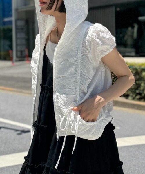 大きめフードがかわいい夏ブルゾン♡▼デザイン・ふわふわした生地とドロストのクシュっとしたデザインがかわいい♡・短めのパフスリーブのシルエットがガーリーな印象に・裾にしっかりめのゴムで着ぶくれなく、ポケットもついてます♪▼コーディネート・カーゴパンツやスウェットパンツなどのアイテムと相性◎・キャミソールやノースリーブのアウターとして羽織るだけでコーデにまとまりを※洗濯、取り扱い洗濯:40度限度 手洗いアイロン:低温120℃まで スチームなし(あて布使用)タンブル乾燥:不可--------------------裏地:なし透け感:ややあり厚さ:やや薄め伸縮性:なし--------------------【商品のお気に入り登録】お気に入りアイテムの値下げ・再入荷・在庫1点などの通知を受け取ることができます。【ブランドのお気に入り登録】新商品や再入荷、セール、クーポン配布などお得な情報を受け取ることができます。※サイト上のカラー名と、お届け商品に記載されているカラー名が異なる場合がございます。※商品の色味は、撮影場所や光のあたり具合などにより色味が違って見える場合が御座います。また、お客様のお使いのPCのモニター環境などにより色味が違って見える場合が御座います。予めご了承の上ご注文下さい。※ご注文いただいた予約商品のお届け時期の確認は、注文履歴ページより行えます。