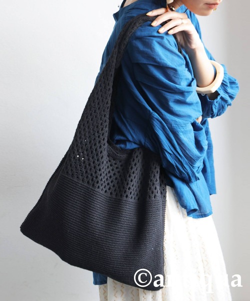 "二つの編地がつくる、軽やかさと安心感。" ちゃんとお洒落!『ニットバッグ』 上部は抜け感のあるメッシュ編みで涼しげな印象を。 下部は目の詰まったニット編みで、荷物が落ちないようしっかりと守ってくれるデザインバッグ。 気取らないけれど、ちゃんとお洒落。そんな存在感を放つ優秀アイテム! ≪DETAIL≫ ・使い心地の良い上部と下部の異なる編地。 ・涼し気でナチュラルなニットデザイン。 ・持ち手が長く肩掛けにも◎ ・しっかりと荷物が入る、見た目以上の収納力! ※デザインの特性上、指輪等の装飾品または爪等にひっかかり、糸が抜けたりする可能性がございます。 お取り扱いの際には、上記店にご注意ください。 【♡マークを押して、お気に入り登録を!】 『ラスト1点通知』、『再入荷通知』、『値下げ通知』など、お得な情報を受け取ることができます!! 気になったアイテムは今すぐ ”お気に入り登録” をお忘れなく★★