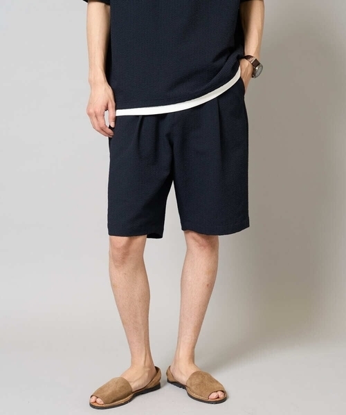 ◆夏に嬉しいシアサッカー素材を使用したワンタックハーフパンツ◆ 【デザイン】 ストレッチの効いた薄手のシアサッカー素材を使用した、ワンタック入りハーフパンツ。 膝が半分隠れる程度の丈感で、カジュアル過ぎずに大人の方でも気負えず着用いただけるよう仕上げました。 夏にぴったりの涼しくリラックス感のある一枚。 ストレッチ性もあり、ウエストイージー仕様のため履き心地も楽ちん。 後ろウエストはゴム入りで、内側の紐でウエストを調整していただけます。 ポケット布にはメッシュ素材を使用しており通気性も良く乾きやすいので暑い時期にもおすすめです。 【素材】 シアサッカー素材を使用しており凹凸感があり、さらっと軽い生地感で体離れもよく着心地抜群◎ 夏に嬉しい快適な肌触りです。 着用時のシワにも強い素材なので、長時間の着用でも快適に過ごせるため旅行先など荷物をコンパクトにしたい時にも最適です。 イージーケア、ご自宅で気軽に洗濯機洗いができる大人にも最適な上品見えする素材です。 \夏に嬉しい多機能素材/ ・ひんやり涼しい接触冷感機能 ・さらっと快適な吸水速乾 ・毛玉になりにくい素材できれい長持ち ・ご自宅で気軽に洗濯機で洗える ・着用しても洗ってもしわが気にならないイージーケア 【スタイリング】 トップスにはシャツやカットソーなど様々なアイテムに合わせられる万能ボトム。 同素材のジャケットやポロシャツを合わせる同色のセットアップコーディネートがまとまりがありトレンド感が満載です。 【シアサッカーシリーズ】 ◆テーラードジャケット:KHJGA76119 ◆ワイドシルエットポロシャツ:KHBGA76069 ◆セミルーズパンツ:KHLGA76064 ◆ハーフパンツ:KHLGA75059 ---------------- 透け感:なし 裏地:なし 伸縮性:あり 光沢感:なし 生地の厚さ:やや薄手 ---------------- ≪お気に入り登録機能の使い方≫ ■商品のお気に入り登録(ハートマークをクリック) 再入荷通知や値下げ等、お得なご案内を受けることができます。 ---------------- ※商品画像は、光の当たり具合やパソコンなどの閲覧環境により実際の色味と異なって見える場合がございます。 商品の色味の目安は商品単体の画像をご参照ください。
