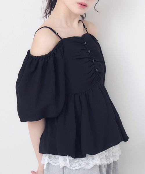 <フェミニンガーリーなモテオフショルブラウス>▼デザイン女性らしいオフショルダーのブラウスアイテム。パフスリーブで着になる二の腕もカバーしてくれます。ふわっと広がるぱプラムシルエットが女性らしく、フェミニンコーデに最適♪胸周りは控えめに引き算ができたデザインで、大人っぽさがあるのも魅力▼コーディネートデニムパンツと合わせるとカジュアルフェミニンなスタイルに。タイトスカートで綺麗目にまとめるのも◎------------------------------生地感:普通伸縮性:なし透け感:なし裏地:ある------------------------------▼ブランド紹介ems excite (エムズエキサイト)“more fun more cute”今をもっと楽しくもっと可愛くいたい女の子に向けたgirly cuteなブランド#バルーン #オフショルアイテム #オフショルダー#ブラウス #ブラウスコーデ #ペプラムシルエット▼注意事項※撮影環境やモニター環境によって実際の商品とお色味が多少異なってみえる場合がございます。品番:EL537523B001 / 品名:オフショルバルーンBL