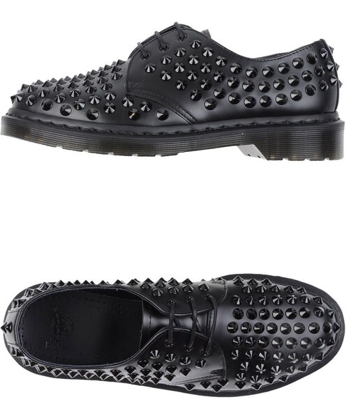 DR. MARTENS Lace-up shoes. studs, solid color, round toeline, rubber sole, square heel, rubber heel. Soft Leather