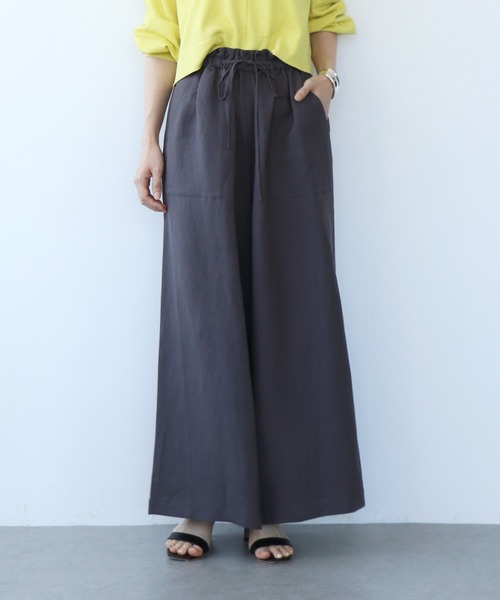 ■麻レーヨンイージーワイドパンツ清涼感と上品さを兼ね備えた、麻×レーヨン素材のイージーワイドパンツ。軽やかな風合いと、とろみのある落ち感が特徴で、夏のコーディネートに抜け感をプラスします。ウエストは総ゴム仕様で、ラクな履き心地ながらきちんと見えも実現。シンプルなトップスを合わせるだけで、洗練された大人のリラックススタイルが完成します。オンにもオフにも使える万能アイテム。涼しく快適な着用感で、これからの季節にぴったりです。