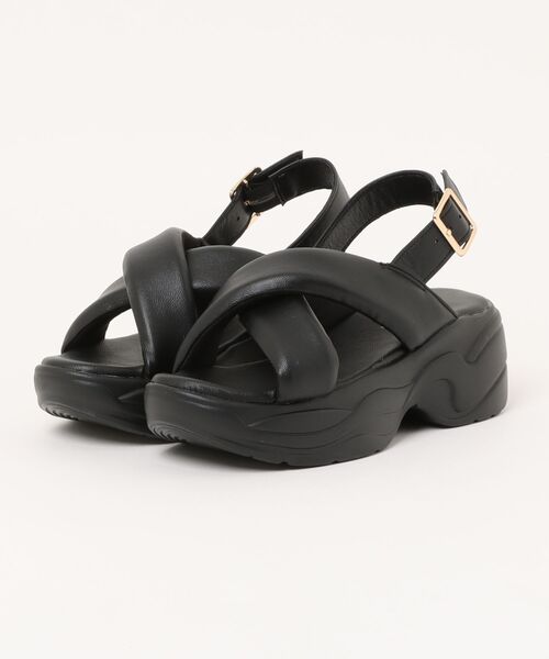 JEWEL CASKET(ジュエルキャスケット)厚底サンダル。 【商品説明】 「履きやすい」「歩きやすい」「疲れにくい」 を追求したパデッド仕様。 足を入れた瞬間から快適な履き心地を実現。 トレンドの厚底デザインながら、ダブルクロスベルトと足首のストラップがしっかりと足をホールドし、安定感も抜群。 長時間のお出かけやアクティブなシーンでも安心して履いていただけます。 スタイリッシュでカジュアルなデザインは、様々なコーディネートにマッチ。 お好みのスタイルに合わせてお選びいただけます。 【ご試着の感想インタビュー】 普段Lや24.0cmを履かれている方。 Mサイズを素足でお試し。 普段はLサイズですが、Mサイズでピッタリでした。 クロスベルトがフカフカしていて痛くなりにくそうです。 バックストラップもゴム付きなので、 着脱が簡単でした。 厚底なのでスタイルアップできそうです。 ※WEB限定デザインです。 ※照明の関係により、実際よりもやや明るく見える場合がございます。またお手元のパソコンなどの環境により、製品と画像のカラーが若干異なる場合もございます。予めご了承ください。
