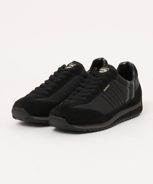 ベーシックながらも洗練されたデザインと高い機能で、PATRICKを代表する幅広い世代に愛される定番「マラソン」。アッパーに軽量で耐久性のあるナイロンと、柔らかく上質なステアベロアを採用し、ボトムスを問わず足元をスマートに引き締める定番のスペースカラー。2013年にシーズン限定カラーとしてリリースされ、瞬く間に完売したカラーです。クッション性に優れたミッドソールやつま先・踵を巻き上げたソールを採用し、終日快適な歩行をサポート。また踵が巻き上がったアウトソールはドライビングシューズとしても最適です。オールブラックにゴールドのアクセントが映えるシックな雰囲気で、カジュアルからビジネスまで多彩なスタイルをカバー。シーズンやトレンドに左右されず、幅広いコーデにマッチするデザインが、男女ともに長く支持される要因です。MADE IN JAPAN●サイズ換算目安:PATRICKのサイズについては当社独自のcmサイズ換算としております。40(25cm)・41(25.5cm)・42(26cm)・43(26.5cm)・44(27cm)・45(27.5cm)・素材:ナイロン/牛革・アウトソール:ゴム底・サイズ感:標準(個人差がございますので目安です)