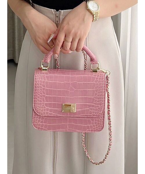 カチッとしつつ、丸みのあるシルエットが女性らしいミニバッグ。 キラッとした金属使いのさりげない輝きがエレガントです。 少し丸みのあるシルエットがクロコのハードな印象を和らげてくれて、大人フェミニンな印象にしてくれます。 セットで金属のチェーンショルダーがついているので、ハンドルでもショルダーでもお好みでお持ちいただけます。 使いやすいベーシックカラーと、コーデのアクセントになる2色展開でお作りしました。 ※画像は全てサンプルです。 ※ピンクがサンプルより少し黄味のあるピンクカラーへ変更となります。~~ZOZOTOWNでお買い物を楽しむ便利機能~~♡商品のお気に入り登録完売カラーの再入荷時、ラスト1点の時、セール開始時に通知でお知らせします。予約アイテムが入荷して通常販売になった時もお知らせしてくれます!♡ブランドのお気に入り登録新商品や再入荷、セールやクーポン情報など、ブランドのお得な情報をいち早く受け取ることができます!~~~~~~~~~~~~~~~~~~~~~~~